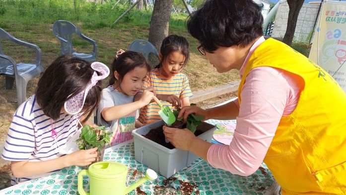 특히 한약찌꺼기와 커피박 등 폐자원을 퇴비로 활용, 딸기를 직접 심어 화분을 만드는 등 다양한 경험을 제공해 호응을 얻었다.