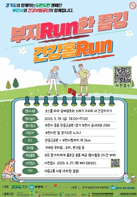 [제주교통복지신문 김강석 기자] 부천시는 오는 19일 ‘세계 금연의 날’을 맞아 안중근공원에서 플로깅 및 금연의 날 캠페인 ‘부지RUN한 줍깅, 건강홈RUN’을 진행한다.