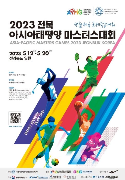 [제주교통복지신문 김강석 기자] 세계 생활체육인들이 실력을 겨루는 국제종합경기대회, ‘전북 아시아·태평양 마스터스대회’가 국내에서 처음 열린다. 문화체육관광부가 후원하고 국제마스터스대회협회(IMGA)가 주최하는 이번 대회는 5월 12일부터 20일까지 전라북도 전주, 군산, 익산 등 14개 시군에서 펼쳐진다.
