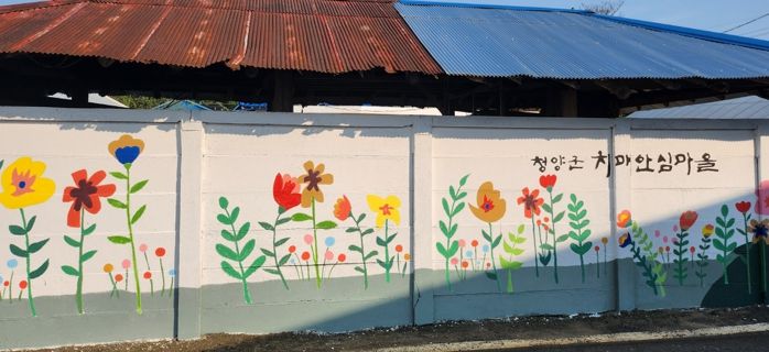 오래된 담장에 꽃과 자연을 그림으로써 마음을 푸근하게 하고 치매 환자와 더불어 살아가는 분위기를 조성하기 위한 벽화사업은 지난 3월부터 충남도립대학교(건축인테리어학과, 소방안전학과, 작업치료학과)와 청양군치매안심센터가 함께 추진했다.