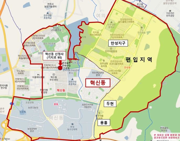 [제주교통복지신문 김강석 기자] 전주시 덕진구 여의동에 속했던 만성지구와 인근 두현·용흥마을이 오는 6월 30일부터는 혁신동으로 편입된다.