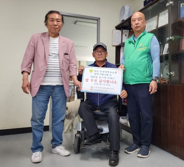 이번 후원은 오수영 회장이 개업(새마을모터스)시 지인들로부터 십시일반 받은 축하 쌀 전부를 후원했다.