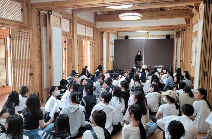 [제주교통복지신문 김강석 기자] 남원시가 판소리의 전통을 잇고 소리와 이야기로 판소리의 역사를 배우는 "국악과 놀자" 체험 프로그램에 지난 5월11일 상명대학교사범대학부속여자중학교 학생 및 교직원 99명이 테마형교육여행으로 안숙선명창의 여정 전시관 관람 및 판소리 체험을 했다.