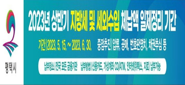 [제주교통복지신문 김강석 기자] 평택시는 조세 정의 실현 및 지방재정의 건전성 확보를 위해 오는 6월 말까지를 '상반기 지방세․세외수입 체납액 일제정리기간'으로 정하고 체납액 징수에 전 행정력을 집중하기로 했다.