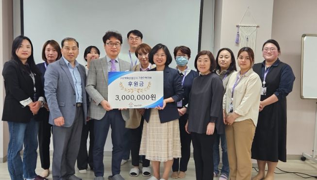이날 고영기 ㈔백학산업단지 기업인협의회장과 조금랑 센터장을 MOU와 함께 300만 원 후원금 전달식을 가졌다.