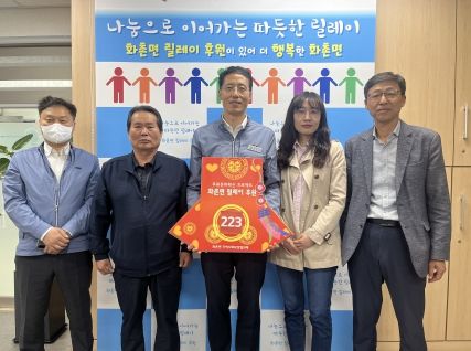 한국수력원자력(주) 홍천양수건설소는 지난 5월 10일 화촌면 행정복지센터를 방문해 지역 내 저소득 취약가구 및 위기가구를 위해 활발히 추진하고 있는 지역특화사업에 도움이 되기를 바란다며 화촌면 릴레이 후원 223번째 주자로 후원에 동참했다.
