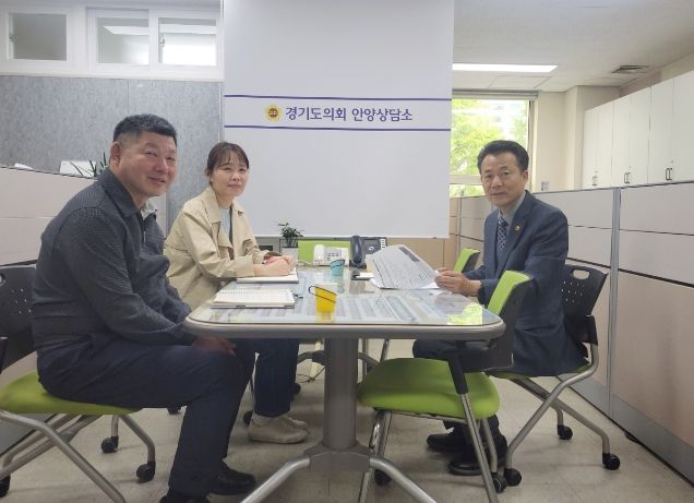 [제주교통복지신문 김강석 기자] 경기도의회 김성수 의원(더민주, 안양1)은 12일 도의회 안양상담소에서 구) 농림축산검역본부 북측 통학로 보행환경개선사업 관련으로 업무보고를 받기 위해 안양시청 도로과 관계자들과 면담를 가졌다.