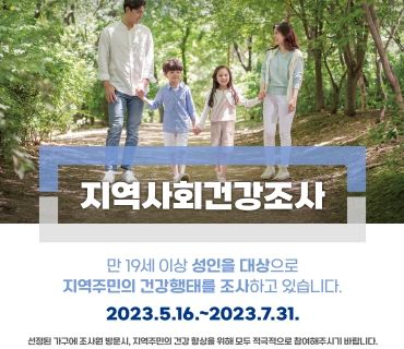 지역사회건강조사는 흡연, 음주 등 지역주민의 건강행태 및 이환, 의료 이용 등 지역 건강통계를 생산해 지역에 맞는 보건정책과 사업계획 수립을 위한 근거 중심의 보건사업을 수행하고자 시행되고 있다.