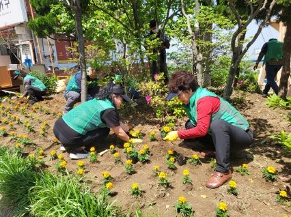 이날 새마을협의회와 새마을부녀회, 동 직원 등 20여 명이 참여해 화단에 메리골드 등 초화를 심어 화사한 꽃길을 만들고 주변을 깨끗하게 정비했다.