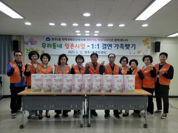 ‘우리동네 일촌사업’은 관내 1인 가구 중 고령과 질병으로 돌봄이 필요한 세대와 지역사회보장협의체 위원과의 결연을 통해 고독사를 예방하고, 주민 주도의 지역보호체계를 구축하기 위하여 2022년 6월부터 추진 중인 사업으로, 매월 가정방문을 통해 대상자의 안부를 확인하고 애로사항을 동주민센터로 전달하고 있다.