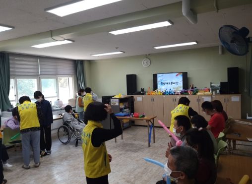 풍선아트봉사단은 매월 1회 김천시중증장애인지원센터를 방문하여 이용생들과 서로 공유하면서 풍선 아트 만들기 체험을 해오고 있으나, 회장님께서“과외의 시간이란 틈이 생기면 언제라도 방문하여 이용생들과 함께하면서 서로서로 즐거움과 행복을 나누는 시간을 가지겠다”는 약속을 남기고 센터 문을 나선다.