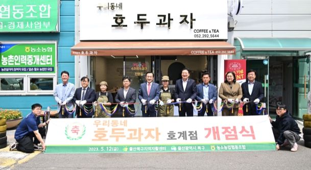 북구 호계2길 13 농소농협 경제·교육지원본부 1층에 개업한 '우리동네 호두과자'는 지난 2월부터 농소농협과 신규사업 협의 후 인테리어 공사를 진행했다. 전문교육을 받은 자활참여자 4명이 운영에 참여해 커피와 호두과자를 판매하게 된다.