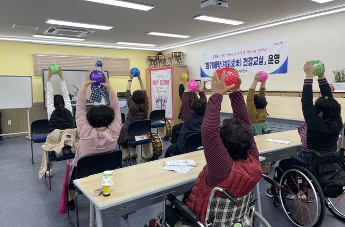 ‘화창한 기운으로 사랑하며 즐기자’는 뜻을 담고 있는 화기애락 건강 교실은 코로나19로 사회활동이 축소된 지역 장애인의 운동기능 유지와 신체적·정서적인 지지 강화를 통해 사회참여를 활성화하기 위해 기획됐다.