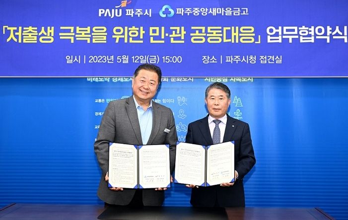 [제주교통복지신문 김강석 기자] 파주시와 파주중앙새마을금고가 12일 ‘저출생 극복을 위한 민·관 공동 대응’ 업무협약을 체결했다.