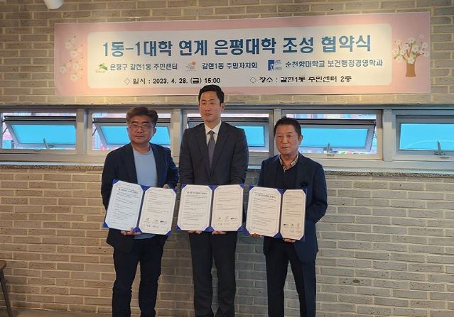 [제주교통복지신문 김강석 기자] 은평구 갈현1동은 지난달 28일 동 주민자치회, 순천향대학교 보건행정경영학과와 1동-1대학 연계 은평대학 조성 업무협약을 체결했다고 밝혔다.