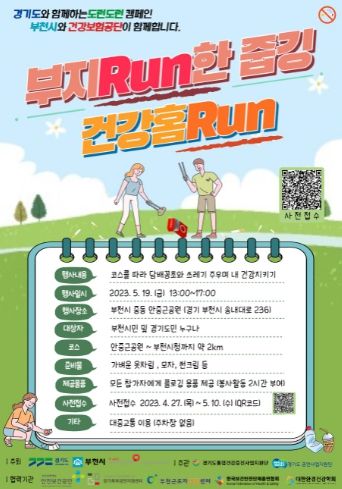 [제주교통복지신문 김강석 기자] 경기도와 부천시가 5월 19일 부천시 안중근공원에서 건강생활실천을 위해 건강증진 플로깅(조깅+쓰레기 줍기) 캠페인 ‘부지런(Run)한 줍깅, 건강홈(Run)’을 진행한다.