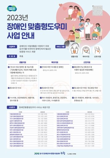 현재 장애인 맞춤형도우미 사업은 도내 27개 시·군 30개 장애인복지관을 통해 운영하고 있다. 도움이 필요한 장애인은 읍면동 행정복지센터, 시군구청, 장애인복지관에서 신청할 수 있다.