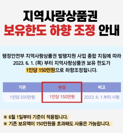 이로써, 기존 150만 원 이상 보유 중인 시민은 사용에 문제가 없지만, 6월 1일부터는 추가 구매(충전)가 불가능해 잔액을 소비해야 구매할 수 있다.