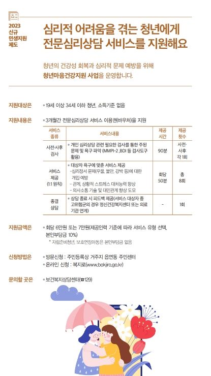 3개월간 전문심리상담 서비스 이용권(바우처)을 지원