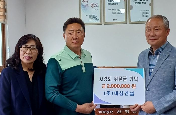 [제주교통복지신문 김강석 기자] 하동읍은 ㈜대삼건설 이대삼 대표가 지난 12일 하동읍에 거주하는 취약계층에 전해 달라며 위문금 200만원을 기탁했다고 15일 밝혔다.