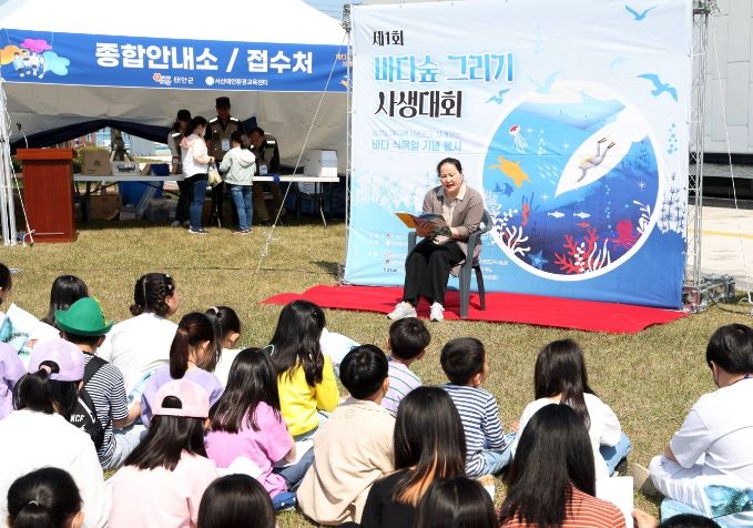 사전 신청을 통해 행사에 참여한 지역 어린이 220명은 이날 오전 10시부터 아름다운 만리포 해변을 배경 삼아 바닷속 풍경과 포스터 등 각자의 작품을 그려냈으며, 가족 및 관광객들의 응원과 관심 속에 상상력 가득한 작품들을 완성해 관심을 끌었다.