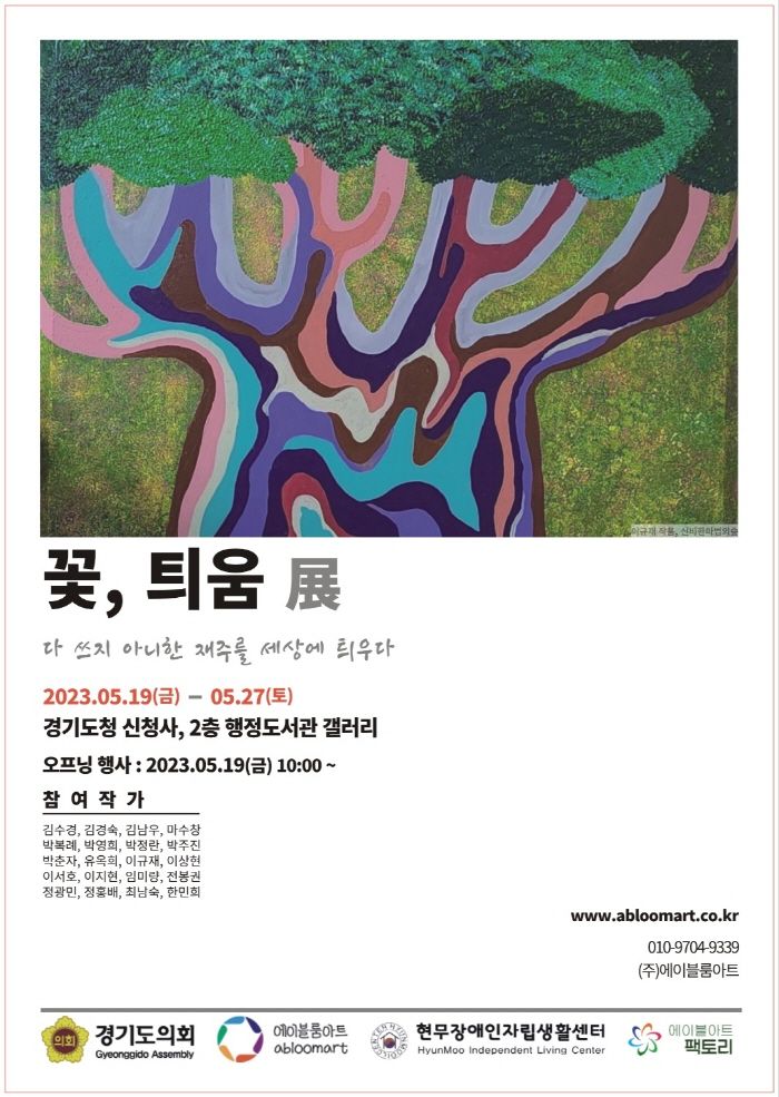 이번 전시회는 경기도의회(의장 염종현)가 후원하고 비영리 에이블아트팩토리와 현무장애인자립생활센터(소장 김수경), 사단법인 한국장애인영상문화협회(대표 이익재)에서 공동주최하고 ㈜에이블룸아트(대표 김상철)가 주관한다.