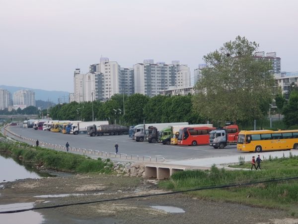 주차 공간은 대형차 58대, 소형차 50대 규모로 앞으로 화물차 공영차고지 조성사업 또는 하천 복원사업 완료 때까지 한시적으로 운영한다.
