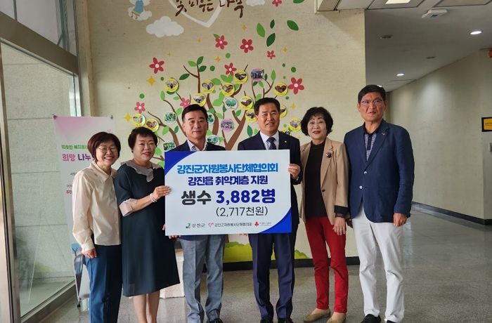 김영일 강진읍장은 “강진군자원봉사단체협의회에서 지역의 어려움 해결을 위해 주도적으로 모금운동을 추진해주시고, 또 이에 적극 참여해주신 관내 기관과 단체, 주민들에게 감사드린다”며 “식수 문제로 인한 주민들의 불편사항 해소를 위해 적극 노력하겠다”고 전했다.
