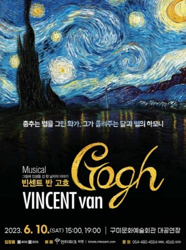 [제주교통복지신문 김강석 기자] 구미시는 6월 10일 오후 3시, 7시에 기획공연 뮤지컬 '빈센트 반 고흐'를 구미문화예술회관 대공연장에서 개최한다.