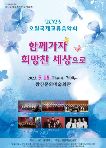 음악회 총연출을 맡은 박호진 광산구립합창단 지휘자는 “세계평화와 희망을 기원하고 희망찬 세상으로 함께 가길 바라는 마음으로 오월국제교류음악회를 기획했다”며 “서로 다름을 인정하고, 이해와 양보로 함께 어려움을 극복해 나가는 연대의 하모니를 많은 시민과 나누고 싶다”고 밝혔다.