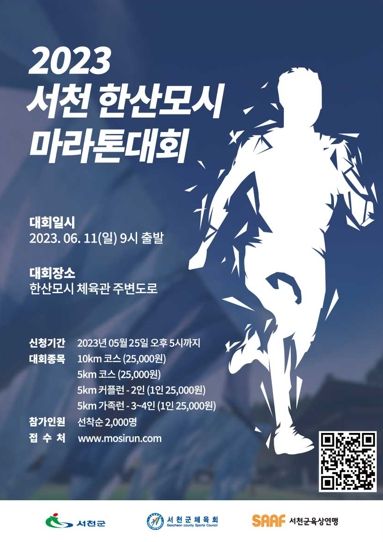 [제주교통복지신문 김강석 기자] 서천군이 2023 서천한산모시배 마라톤대회가 6월 11일 오전 9시부터 한산모시체육관(구 성실여중)에서 개최된다고 13일 밝혔다.