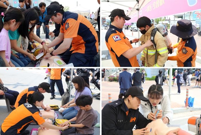 주요 내용은 ▲심폐소생술 및 자동제세동기(AED) 체험 ▲구급장비 전시 ▲방화복 및 공기호흡기 착용 체험 ▲주택용 소방시설 설치 홍보 등이다.