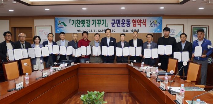 영암군이 지난 12일 군민과 지역기관단체장 등이 참석한 가운데 군청에서 ‘기찬묏길 가꾸기 군민운동 협약’을 맺었다.