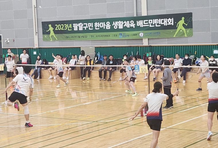 [제주교통복지신문 김강석 기자] 지난 14일 배드민턴 동호인 200여 명이 참가한 가운데 숙지공원 다목적체육관에서 2023 팔달구민 한마음 생활체육 배드민턴대회가 개최됐다.