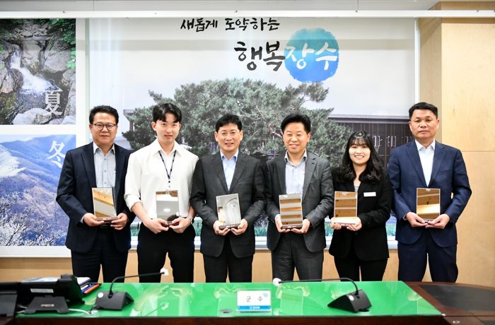 15일 장수군에 따르면, 청렴거울은 MZ세대 신규직원을 겨냥해 ‘#청렴한 당신! #장수의 얼굴’이라는 해시태그를 거울에 문구로 넣어 거울에 자신을 비춰보며 청렴과 친절을 생활할 수 있도록 제작했다,
