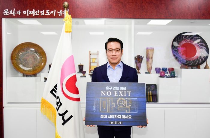 최 시장은 이날 ‘출구 없는 미로, NO EXIT, 마약 절대 시작하지 마세요’라는 문구를 담은 마약 예방 캠페인 이미지와 함께 인증샷을 촬영하고 다음 참여자로 박주영 남원의료원장, 소재실 남원소방서장을 지목했다.