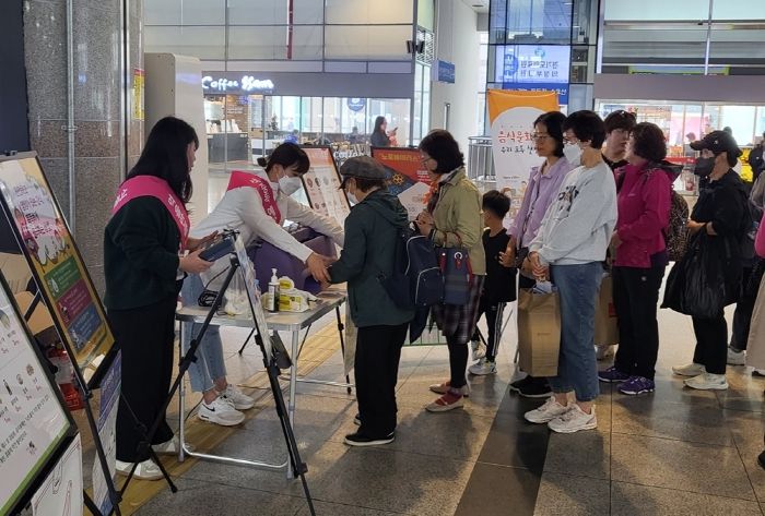 캠페인은 ▲식중독 예방수칙 및 퀴즈 ▲당류‧나트륨 줄이기 ▲방사능 안전관리 ▲위생 등급제 안내 ▲사회복지급식관리지원센터 개소 ▲올바른 손 씻기 체험 등으로 이뤄졌다.