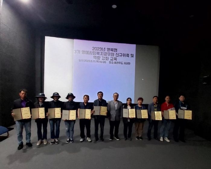 [제주교통복지신문 김강석 기자] 영북면은 지난 11일 클라우드 시네마에서 3기 명예사회복지공무원 신규 위촉식 및 역량강화 교육을 실시했다.