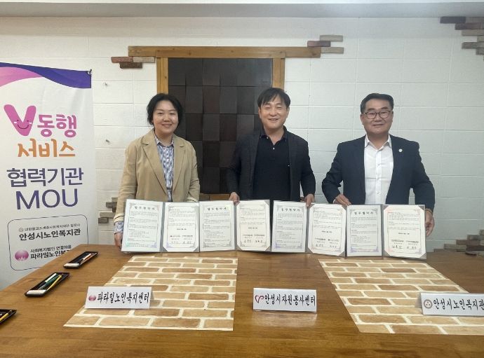 안성시자원봉사센터는 이날 간담회에서 V-동행 사업 내용, 자원봉사자 및 생활지도사의 역할 등의 사업설명을 진행했으며, V-동행서비스 참여 기관인 안성시노인복지관과 파라밀노인복지센터, 총 2개 기관과 서비스 제공을 위한 MOU를 맺었다.