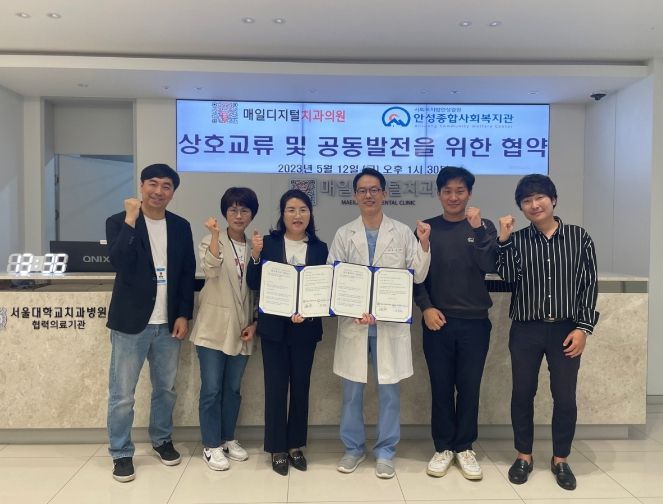 [제주교통복지신문 김강석 기자] 안성종합사회복지관과 매일디지털치과의원은 2023년 5월 12일 협력관계를 형성하여 주민의 복지증진을 위한 업무협약을 체결했다.