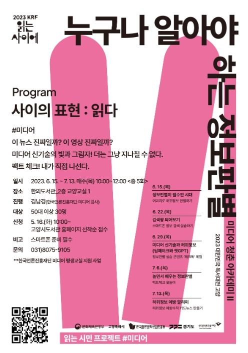 한국언론진흥재단이 후원하는 이 프로그램은 시민들의 디지털 정보판별 능력을 개선하고 건강한 미디어 생활을 영위할 수 있도록 돕기 위해 기획됐다.