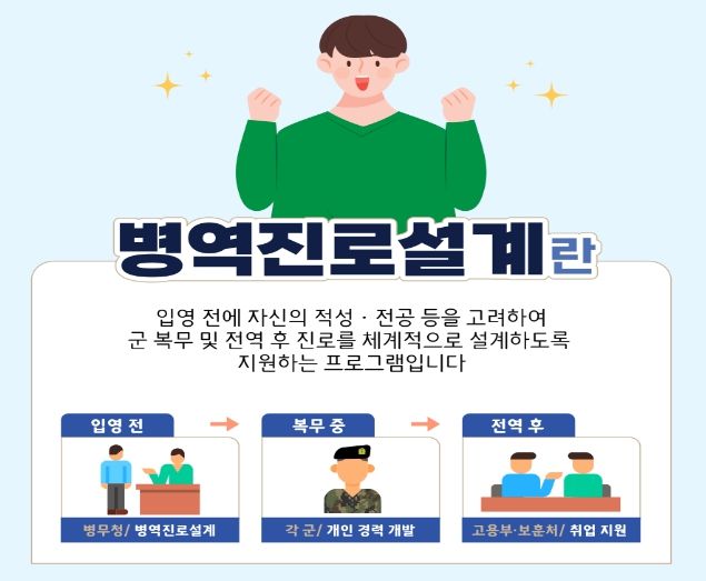 병무청에서는 병역진로설계 서비스를 상시 제공하고자 서울, 부산, 대구, 광주, 대전, 춘천에 병역진로설계지원센터를 운영하고 있다. 올해에는 수원 및 인천에 센터를 추가 설치할 예정이고, 2025년까지 지속 확대하여 전국 12개 주요 도시에 센터를 운영할 계획이다. 병역진로설계지원센터에 언제든지 방문하면 병역진로설계 서비스를 받을 수 있으며 다양한 VR 군 장비 체험과 군 생활 정보도 얻을 수 있다.