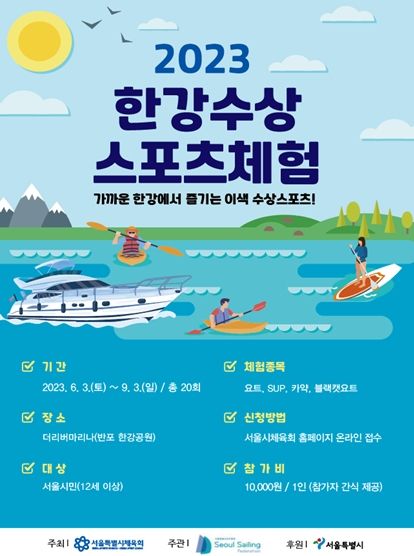 [제주교통복지신문 김강석 기자] 서울시는 시민들에게 야외 수상레저 활동 기회를 제공하기 위해'한강 수상스포츠 체험'프로그램을 6월 3일부터 9월 3일까지 매주 주말 총 20회차에 걸쳐 운영한다고 밝혔다.