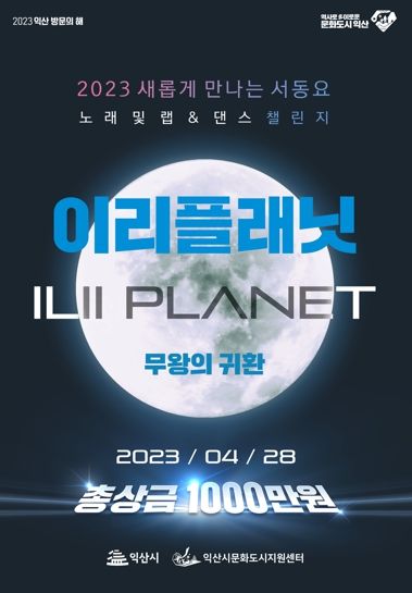 익산시문화도시지원센터는 전국 청소년을 대상으로‘서동과 선화공주의 사랑 설화, 서동요’를 모티브로 노래‧랩 창작과 댄스 챌린지인‘이리플래닛-ILII PLANET’공모전을 실시한다.