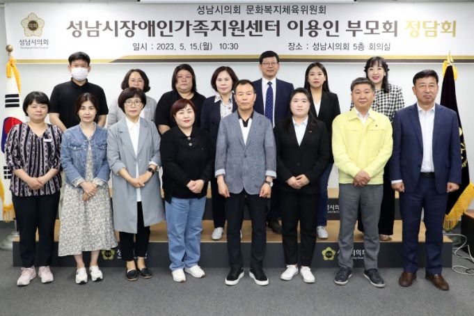 [제주교통복지신문 김강석 기자] 성남시의회 문화복지체육위원회(위원장 안극수)는 5월 15일 오전 10시 30분부터 성남시의회 5층 회의실에서 성남시장애인가족지원센터 이용인 부모회 회원들과 정담회를 실시했다.