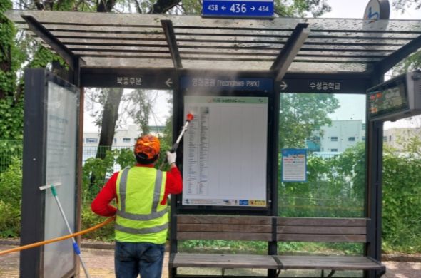 여름철을 앞두고 버스 이용객들에게 쾌적한 환경을 제공하기 위한 이번 작업은 △작업은 고압세척기를 이용한 물 세척 △시설물에 눌어붙은 매연 등 먼지와 오염물질 제거 △낡은 게시판 등 광고물·부착물 제거 등으로 진행됐다.