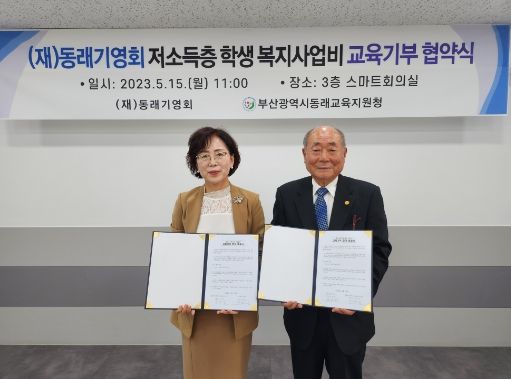 [제주교통복지신문 김강석 기자] 부산광역시동래교육지원청은 15일 오전 11시 교육지원청에서 재단법인 동래기영회와 관내 초·중학교 저소득층 학생 복지 증진을 위한 교육기부 협약을 체결했다.