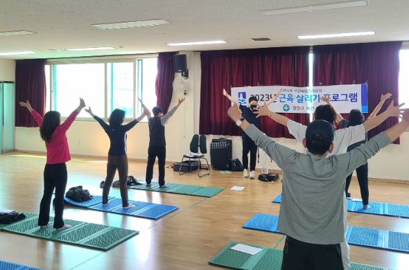 지난 8일 시작된 2023년 근육 살리기 프로그램은 6월 26일까지 월·수요일 정자1동행정복지센터 교육실에서 진행된다.