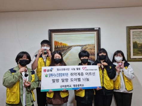 본 행사는 김해시자원봉사센터의 청소년봉사단 활동 과정으로 청소년의 소통과 협력을 통한 자기주도적 성장을 위해 진행된다. 신어중학교, 영운중학교 재학생 30명이 완성한 도어벨은 5월 13일 전달됐으며, 김해시노인종합복지관 사례관리, 재가결식노인 식사배달서비스 대상자 30여명에게 배부될 예정이다.