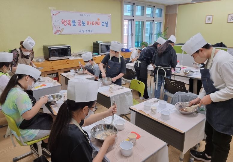 [제주교통복지신문 김강석 기자] 사동중학교(교장 여성동)는 교육복지우선지원사업의 일환으로 5월 13일부터 8월 26일까지 토요일에 참여 희망 학생 13명을 대상으로 ‘행복을 굽는 파티쉐 교실’을 운영한다.